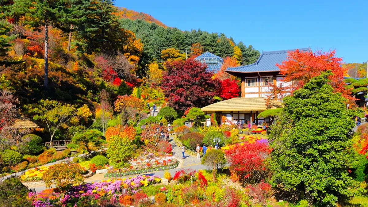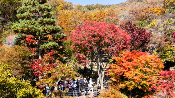 가평군 상면 수목원로 432에 위치한 아침고요수목원은 사계절 내내 아름답지만, 특히 가을 단풍철에는 수목원 전체가 붉은빛으로 물드는 모습이 압도적입니다. 약 33만㎡의 대규모 부지에 20여 개의 정원이 있으며, 고즈넉한 한국식 정원과 서양식 꽃길이 조화를 이루어 사진 명소로도 인기가 많습니다. 10월 말부터 11월 초까지 단풍이 절정에 달하며, 주차 공간이 넉넉하고 도로 접근성이 좋아 주말 나들이 장소로 추천할 만합니다. 입장료는 어른 11,000원, 청소년 8,500원, 어린이 7,500원입니다.