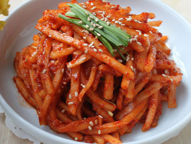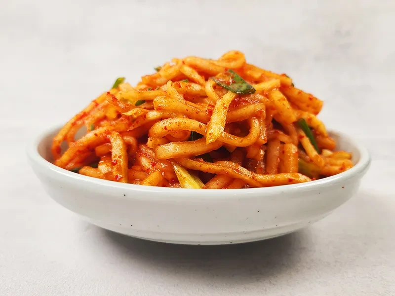 • 비빔밥용 무생채: 단맛과 새콤함을 약간 줄이고 참기름과 마늘의 양을 늘려 풍미를 강화합니다.