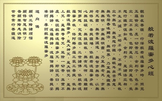 菩提薩埵 依般若波羅蜜多故 心無罣礙 無罣礙故 無有恐怖 遠離顛倒夢想 究竟涅槃
