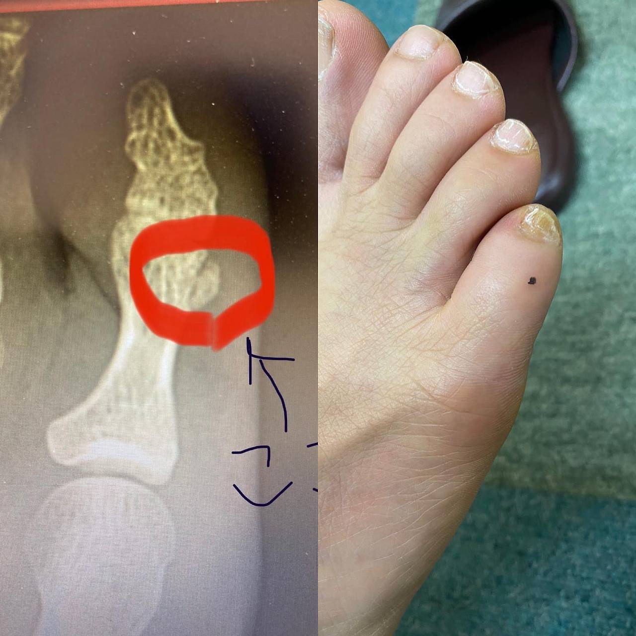 의료적으로 새끼발가락 골절은 X-ray 촬영을 통해 뼈의 연속성이 끊어진 상태가 확인될 때 확진됩니다. 단순 실금 수준의 미세골절부터 명확한 골절선이 보이는 경우까지 범위가 다양합니다.