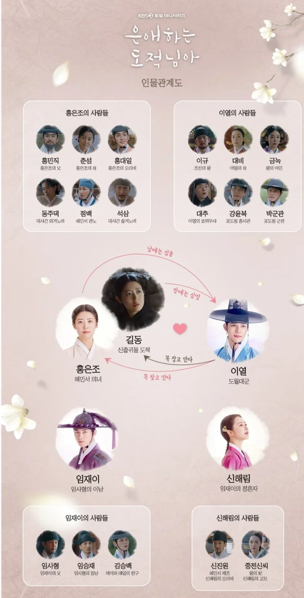 이 드라마 은애하는 도적님아 출연진은 “로맨스 중심 2인”을 세우고, 그 주변에 “권력 핵심부(왕/도승지/영의정/중전/대비)”와 “현장 실무(포도청/군관/호위무사/혜민서)”를 배치해, 의적 활극과 궁중 정치극이 동시에 돌아가게 설계되어 있습니다.